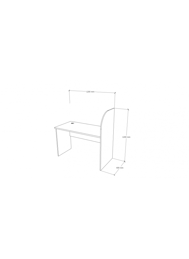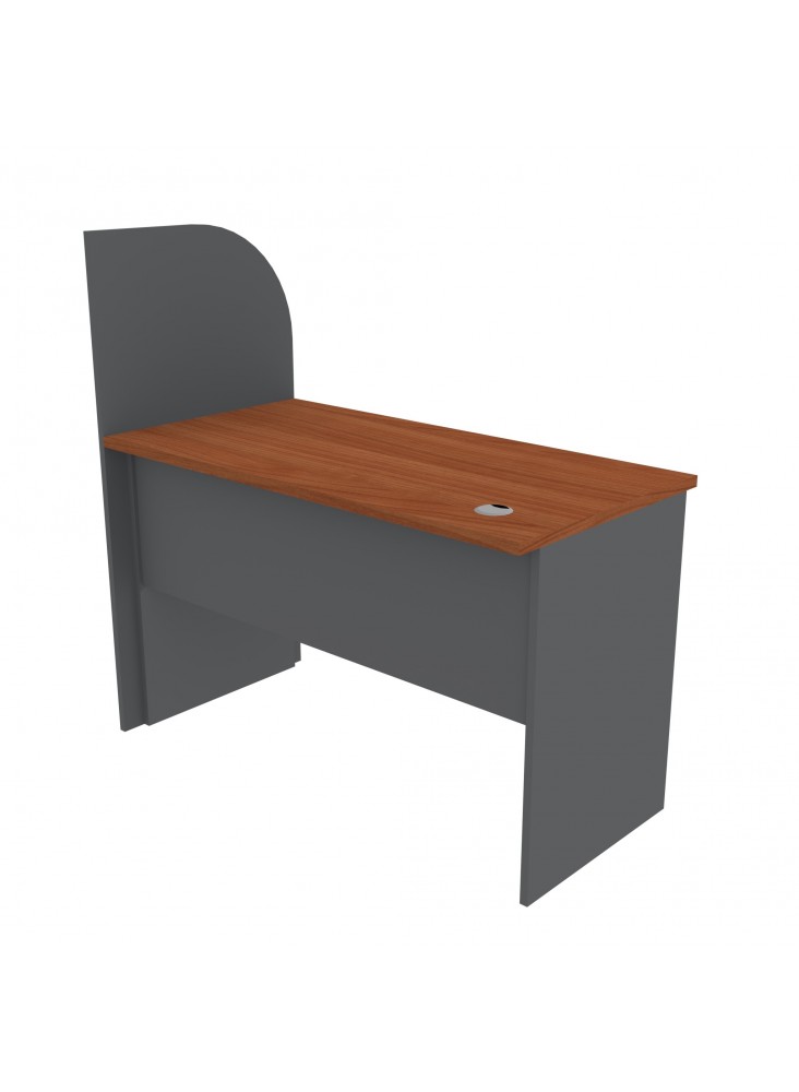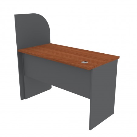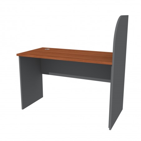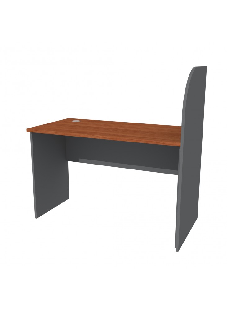 ESCRITORIO PERIMETRAL RECTO 120x60x75H, CON SEPARADOR MELAMINA 18mm, CUBIERTA MELAMINA CEREZO 24mm CON TAPACANTO PVC DE 2mm, BASE MELAMINA GRAFITO 18mm CON TAPACANTO PVC DE 0.4mm, PASACABLES DE PVC, PATINES REGULABLES, SIN CAJONES