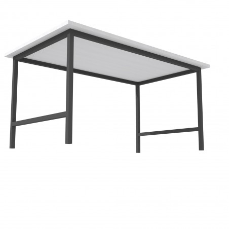MESA RECTA 150x90x75H, CUBIERTA MELAMINA BLANCA 18mm CON TAPACANTO PVC DE 2mm ESTRUCTURA METALICA ELECTROPINTADA COLOR GRIS MT. PERFIL 30x30 CON REGATON