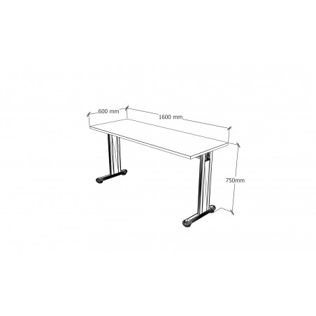ESCRITORIO RECTO FREESTANDING 160x60x75H, CUBIERTA MELAMINA PERAL 24mm CON TAPACANTO PVC DE 2 mm, LATERALES Y VIGA EN ACERO ELECTROPINTADO COLOR GRIS MT, VIGA ELECTRIFICABLE, PASACABLES DE PVC, PATINES REGULABLES . PRODUCTO DESARMABLE